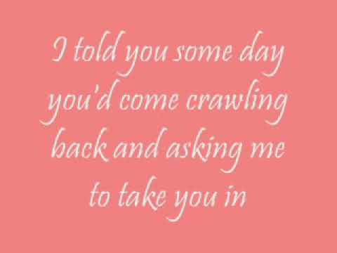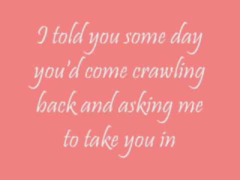I Told You Some Day You Come Crawling Back And Asking Me To Take You In